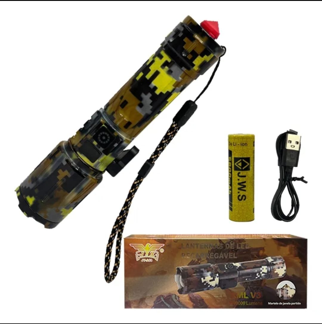 LANTERNA TÁTICA CAMUFLADA  JYX, MODELO JY-A13, LED XML V3, 3999000 LUMENS, IDEAL PARA SUAS OBSERVAÇÕES NOTURNAS, PESCA E CAMPING.